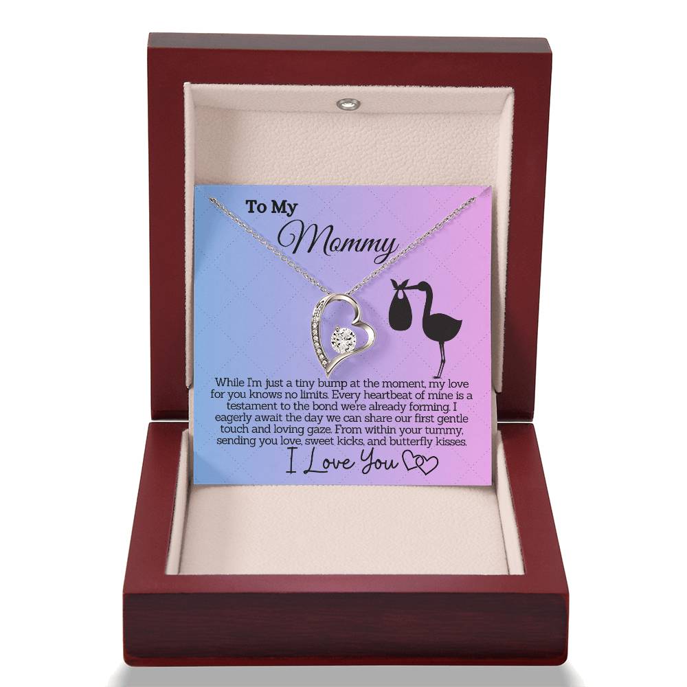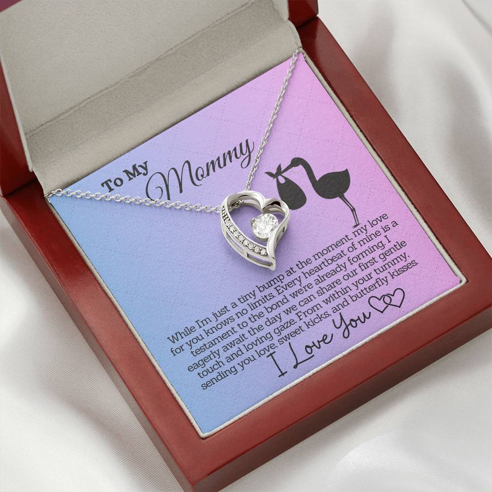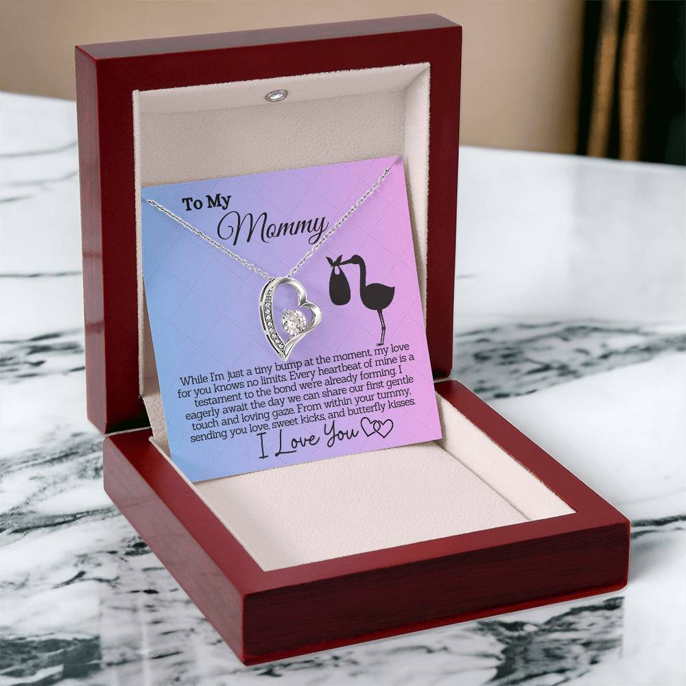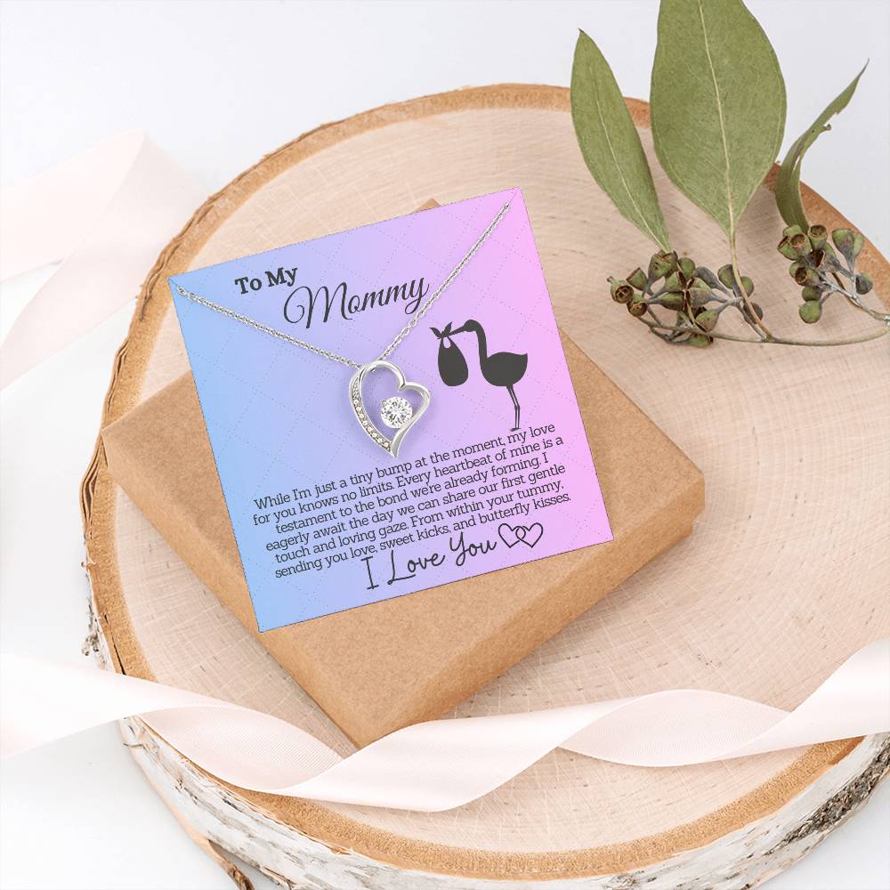 Lift her spirits with this thoughtful gift from baby to mother. This beautiful necklace features a heart made from sterling silver or gold, and comes packaged in a gift box with a meaningful message card. A perfect pregnancy gift for the special mum-to-be.