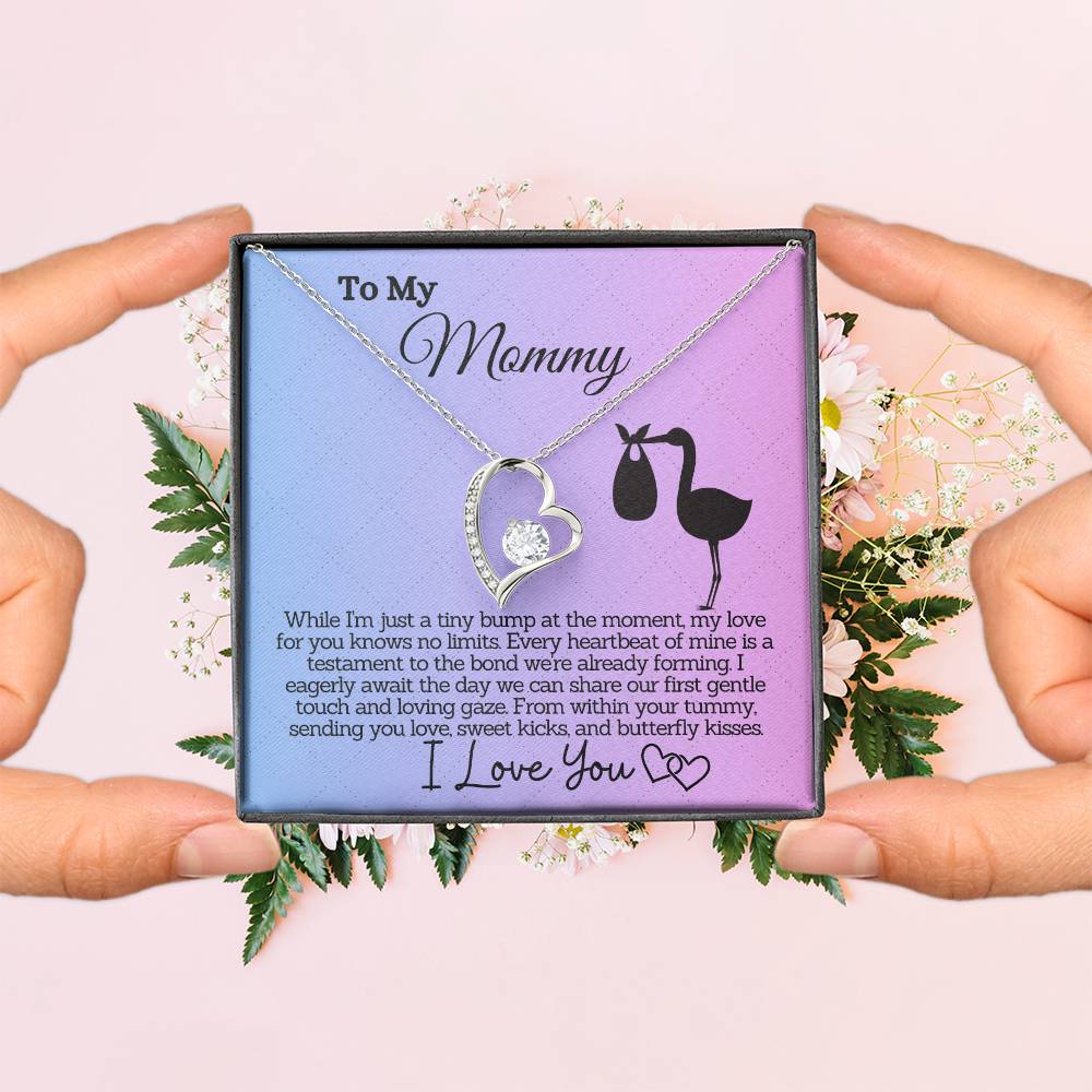 While I'm just a tiny bump at the moment, my love for you knows no limits. Every heartbeat of mine is a testament to the bond we're already forming. I eagerly await the day we can share our first gentle touch and loving gaze. From within your tummy, sending you love, sweet kicks, and butterfly kisses.
