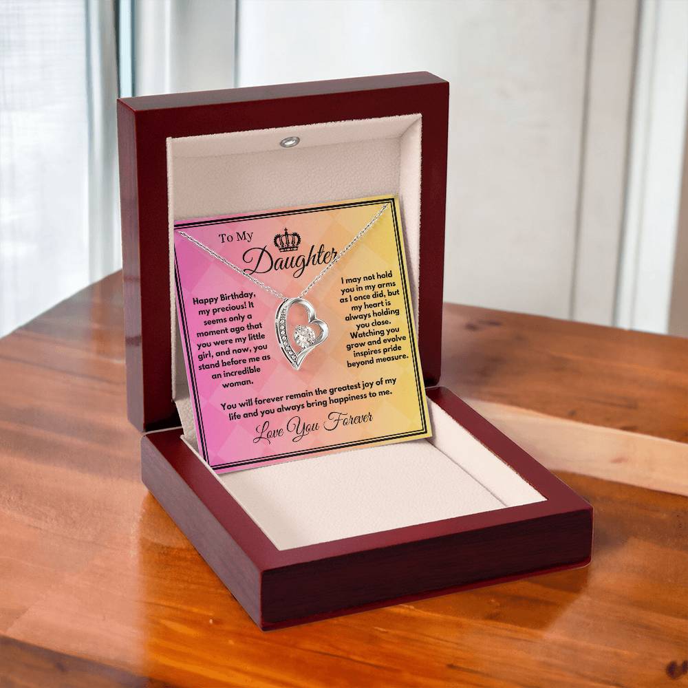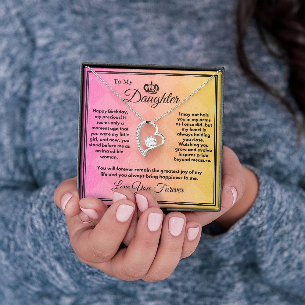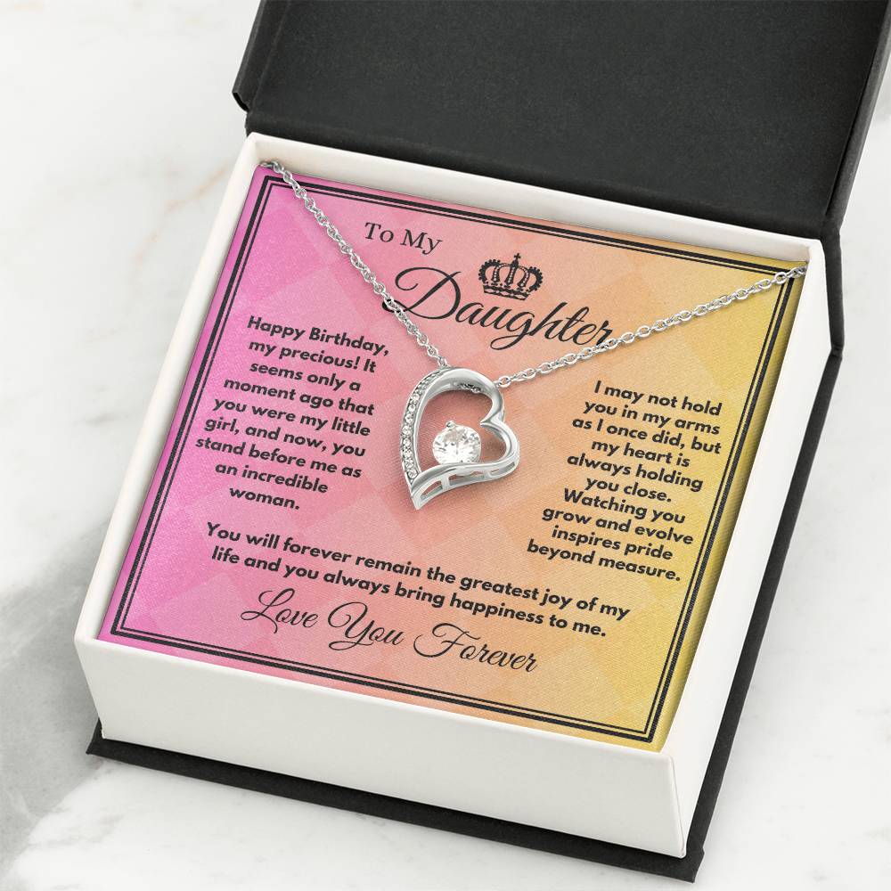 Surprise and delight your daughter or stepdaughter on their special day with this unique Birthday Gift To Daughter. This Heart Jewelry Necklace With A Message Card is a beautiful reminder of your ever-lasting love. The necklace features a touching, heartfelt message that reads “To My Daughter” on a card sealed inside a box. Show your daughter just how much she means to you with this thoughtful and meaningful gift.