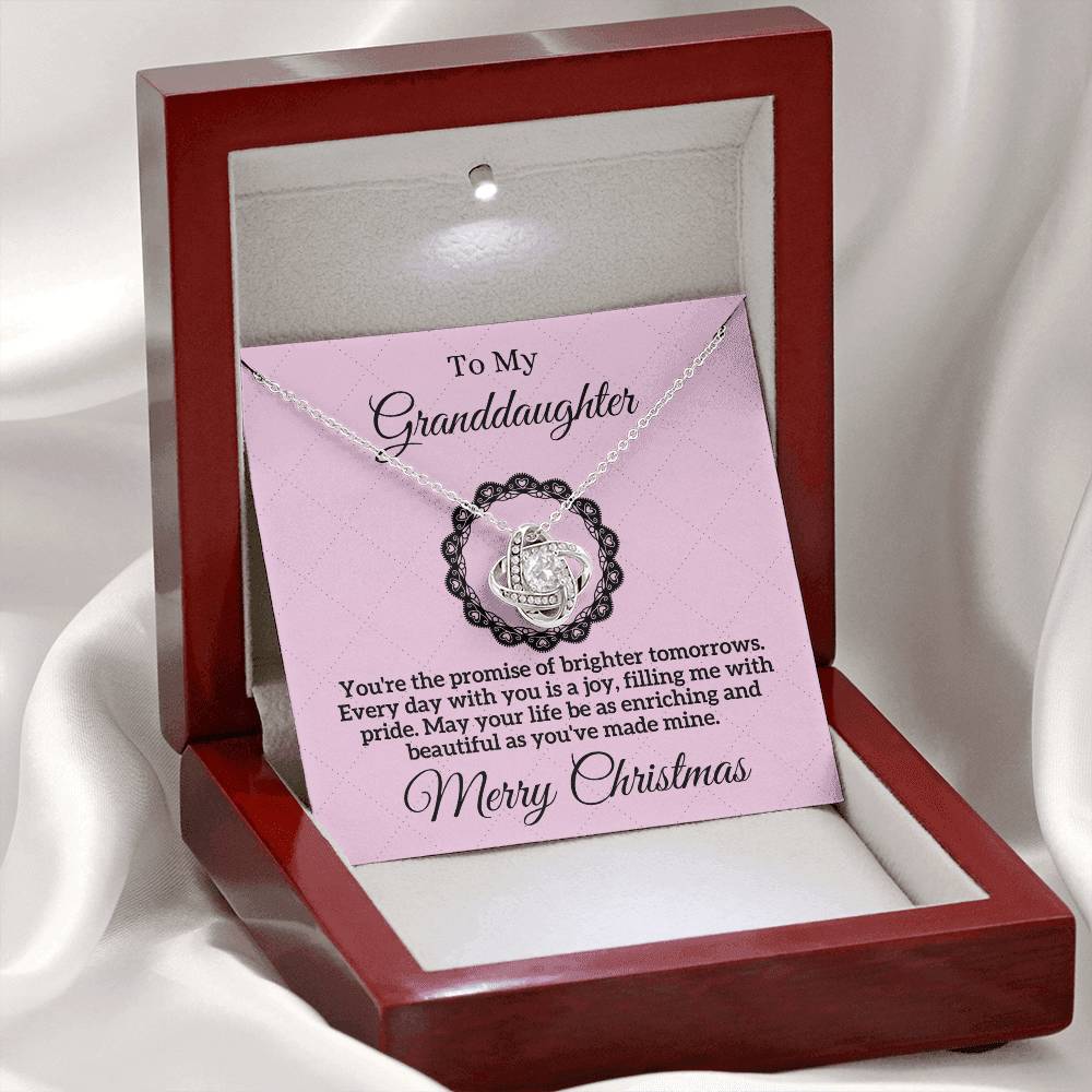 This necklace is the perfect timeless gift to show your granddaughter how much you care! Featuring a message card necklace in a keepsake box, it's the perfect present for any occasion and will ensure your grandchild know they're cherished forever. Make meaningful memories and show your love with this heartfelt jewelry gift!