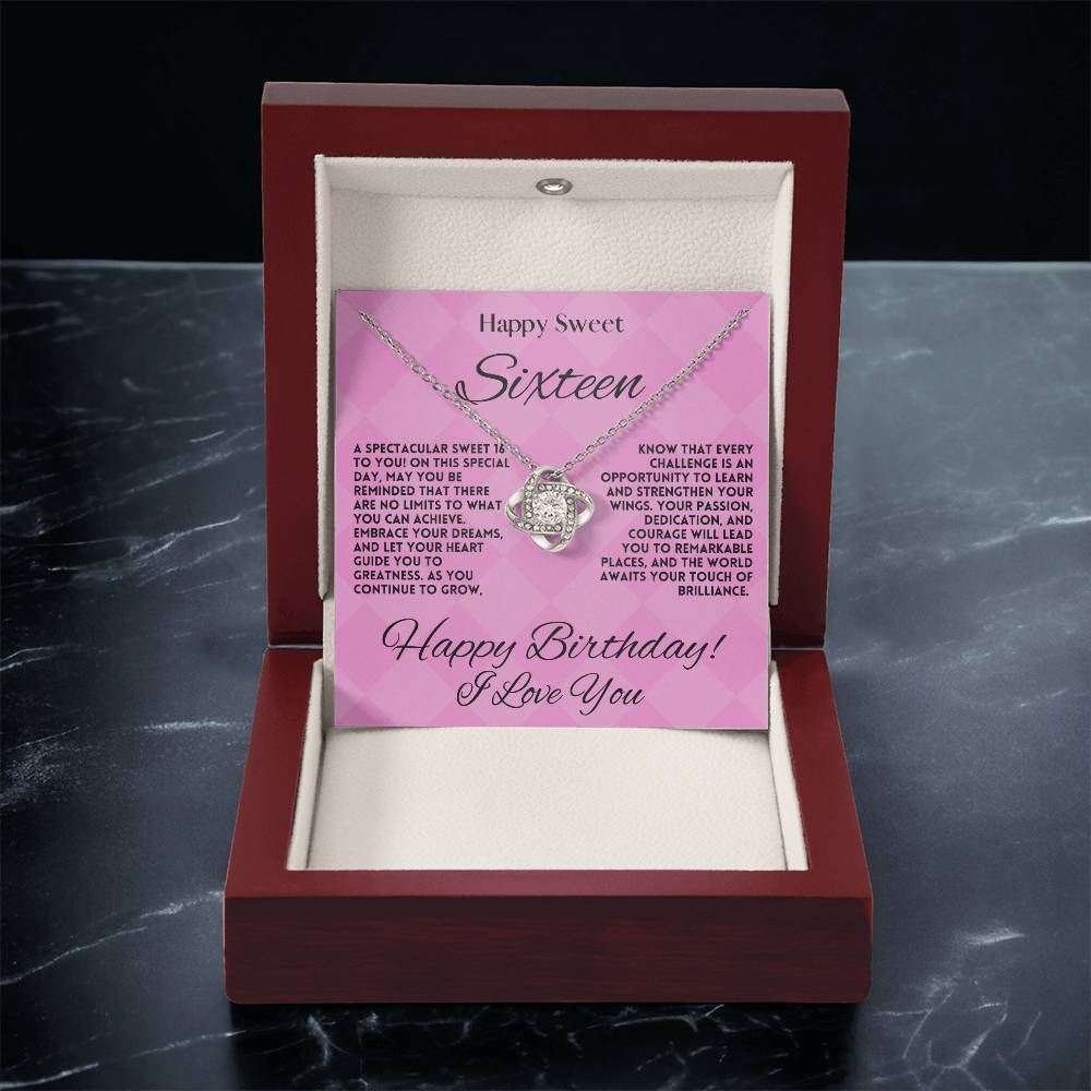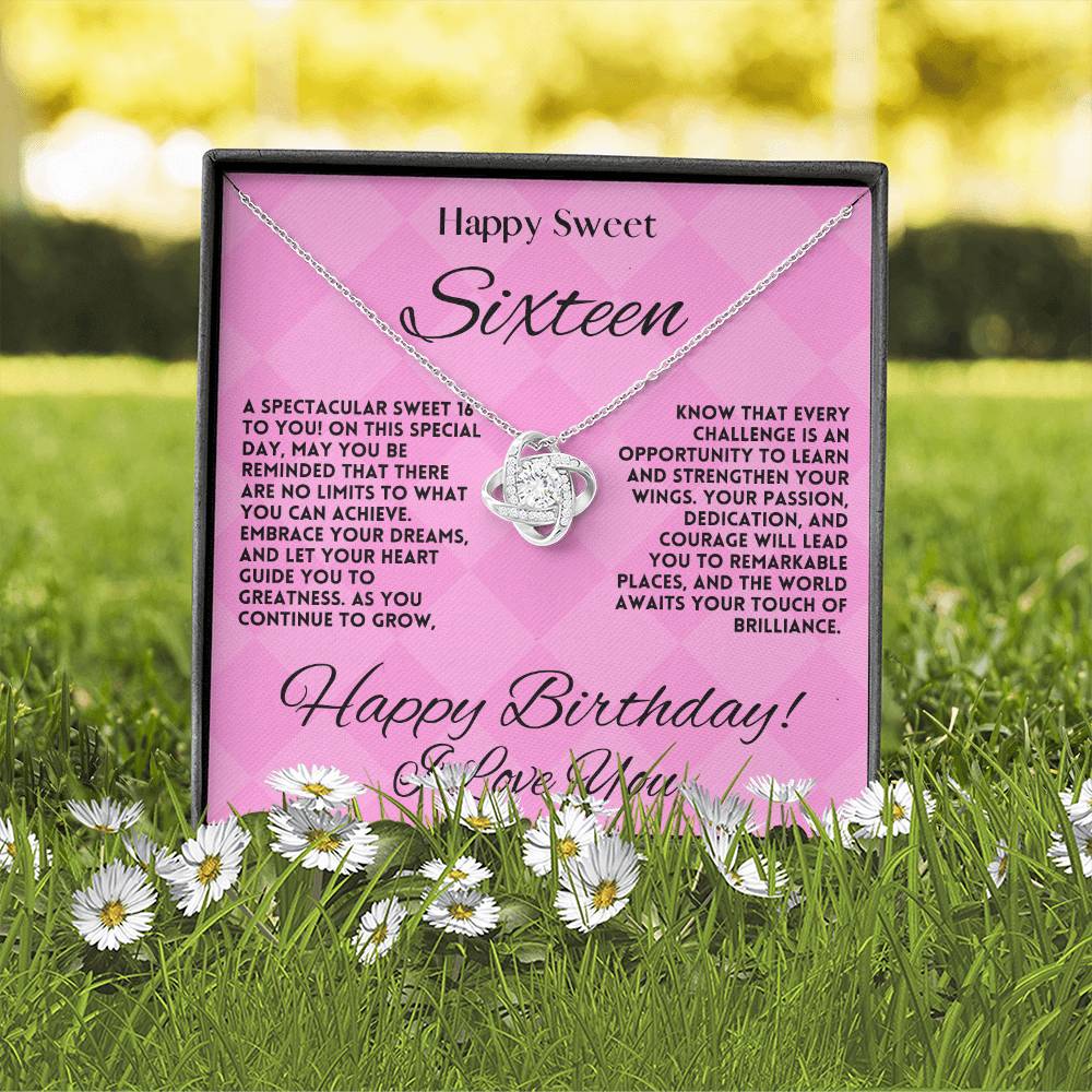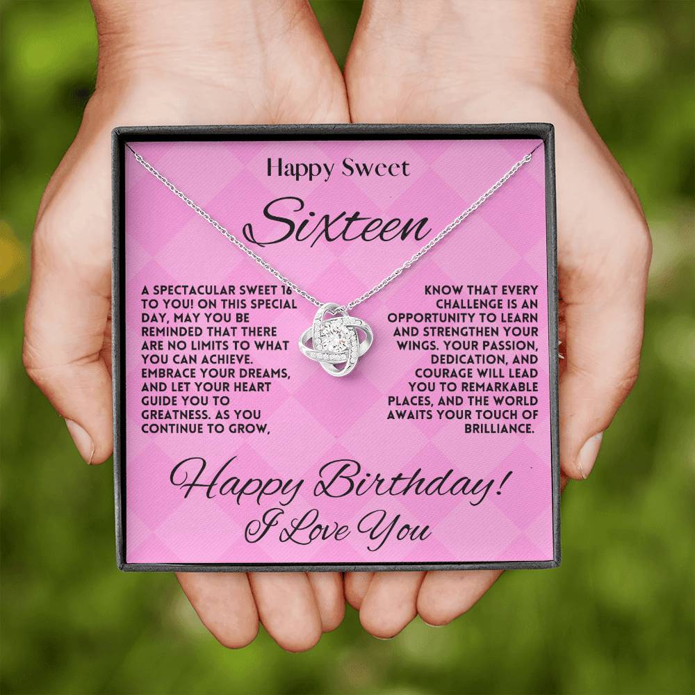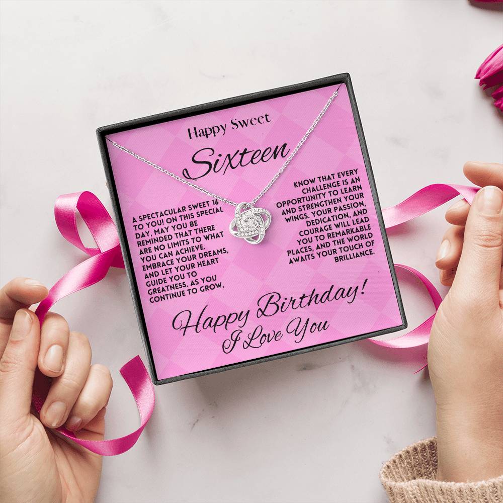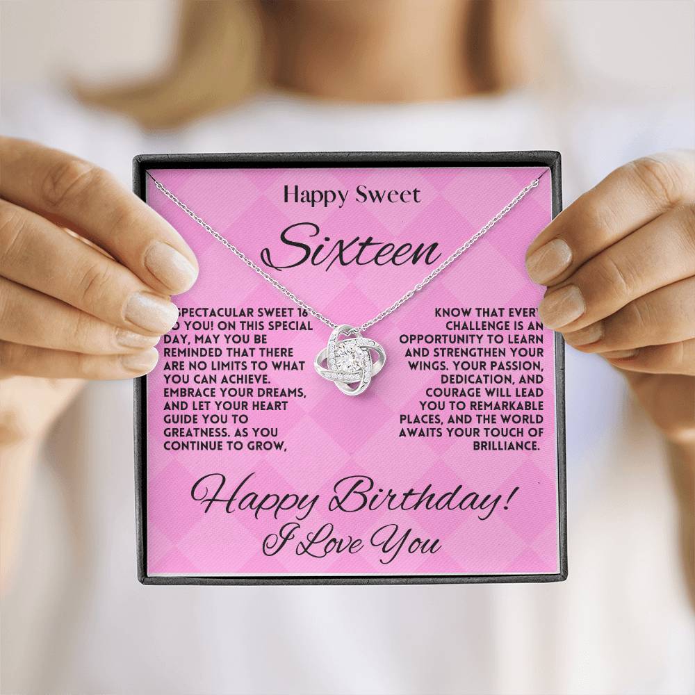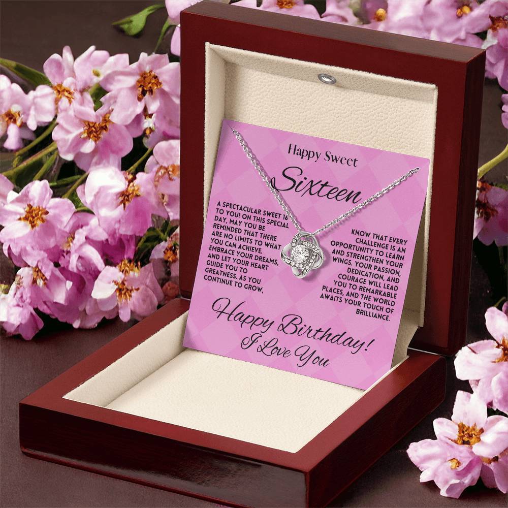 This one-of-a-kind Happy Sweet 16 Birthday Jewelry Necklace Gift For My Daughter is the perfect way to commemorate this momentous day. The unique love knot pendant is specially crafted with sterling silver and its message card and gift box will provide a beautiful reminder of parents' love and support. Make this special day even more meaningful and show your daughter how much she means to you.
