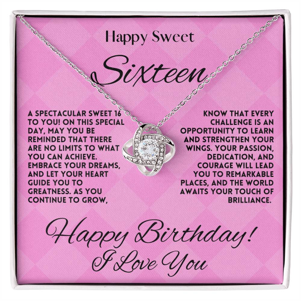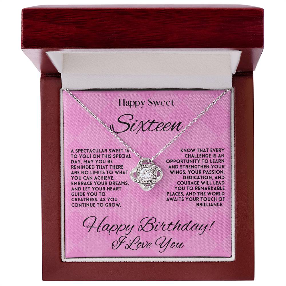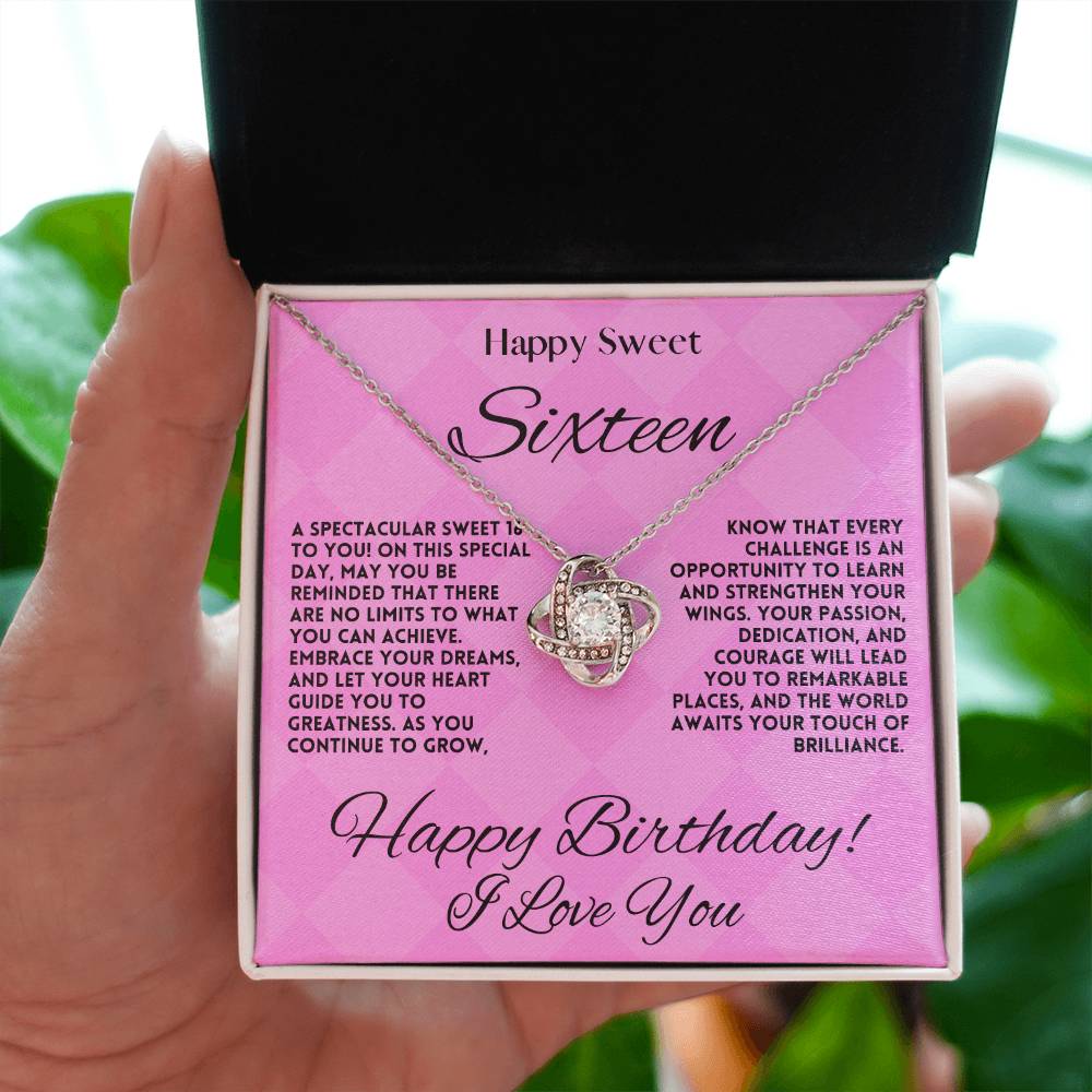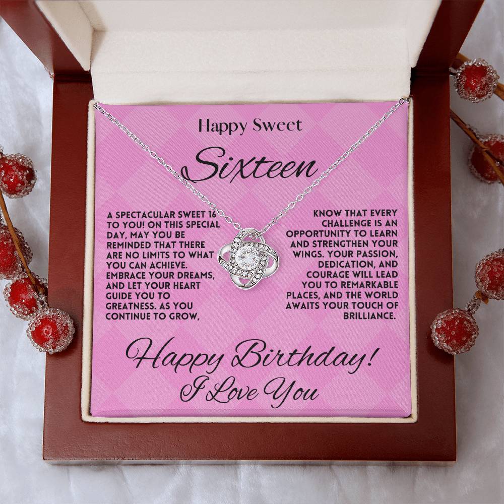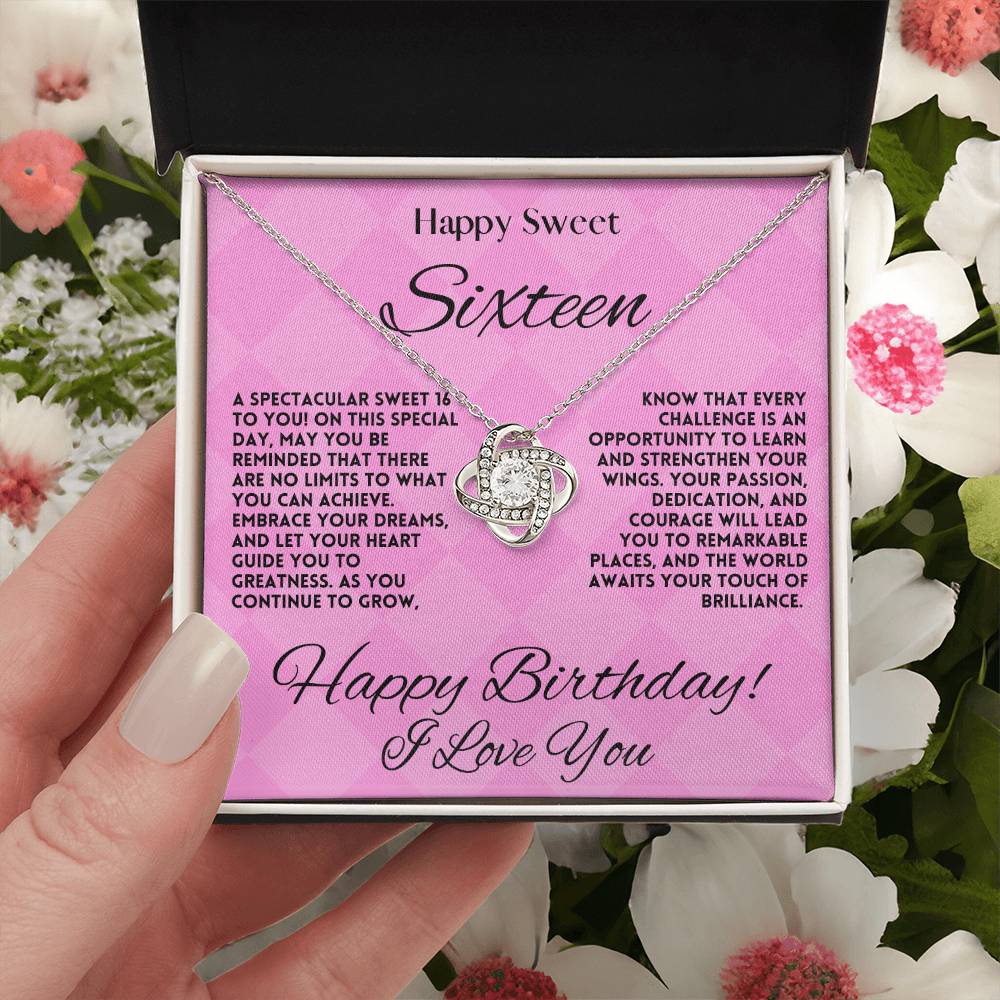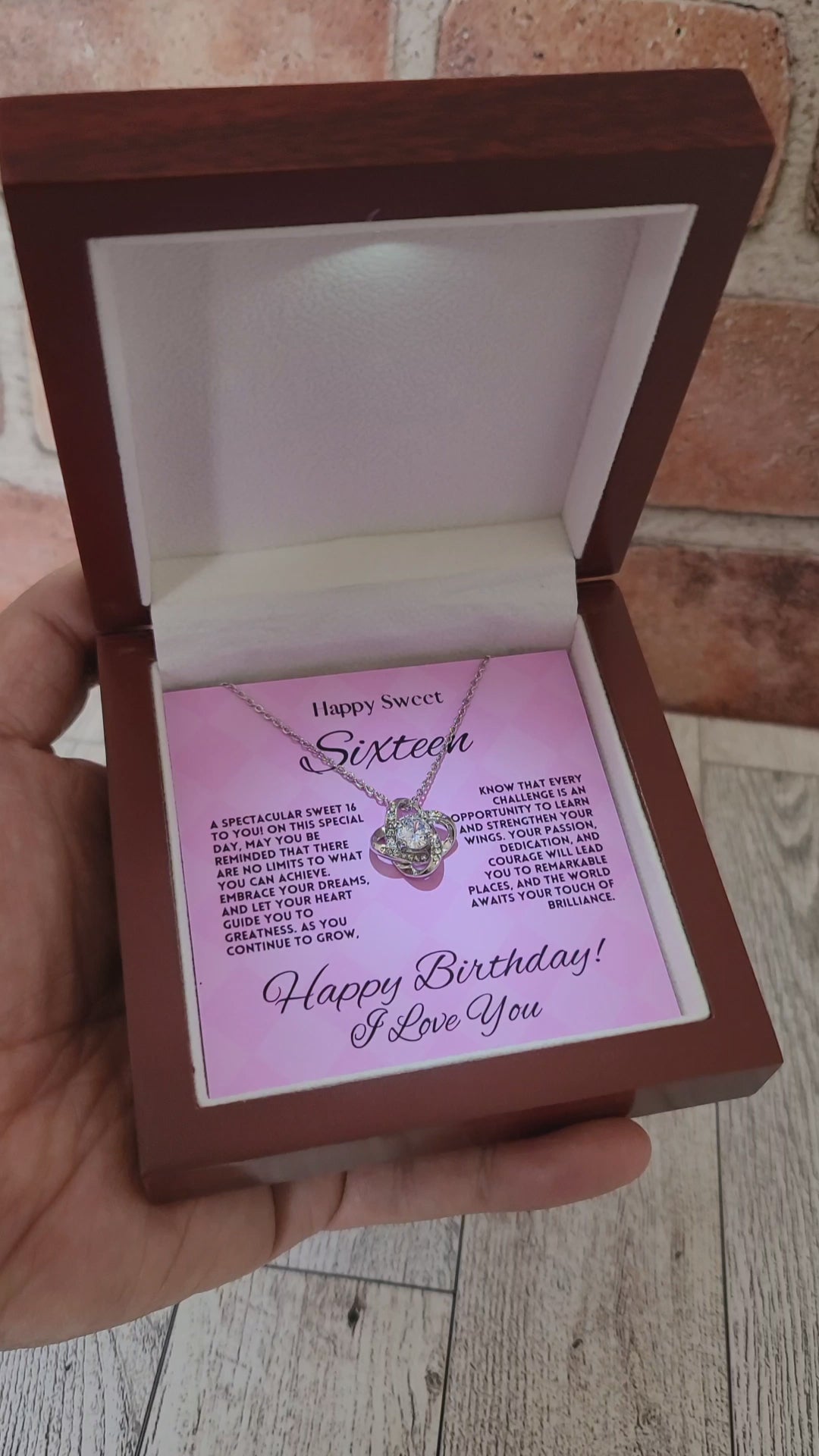 This one-of-a-kind Happy Sweet 16 Birthday Jewelry Necklace Gift For My Daughter is the perfect way to commemorate this momentous day. The unique love knot pendant is specially crafted with sterling silver and its message card and gift box will provide a beautiful reminder of parents' love and support. Make this special day even more meaningful and show your daughter how much she means to you.