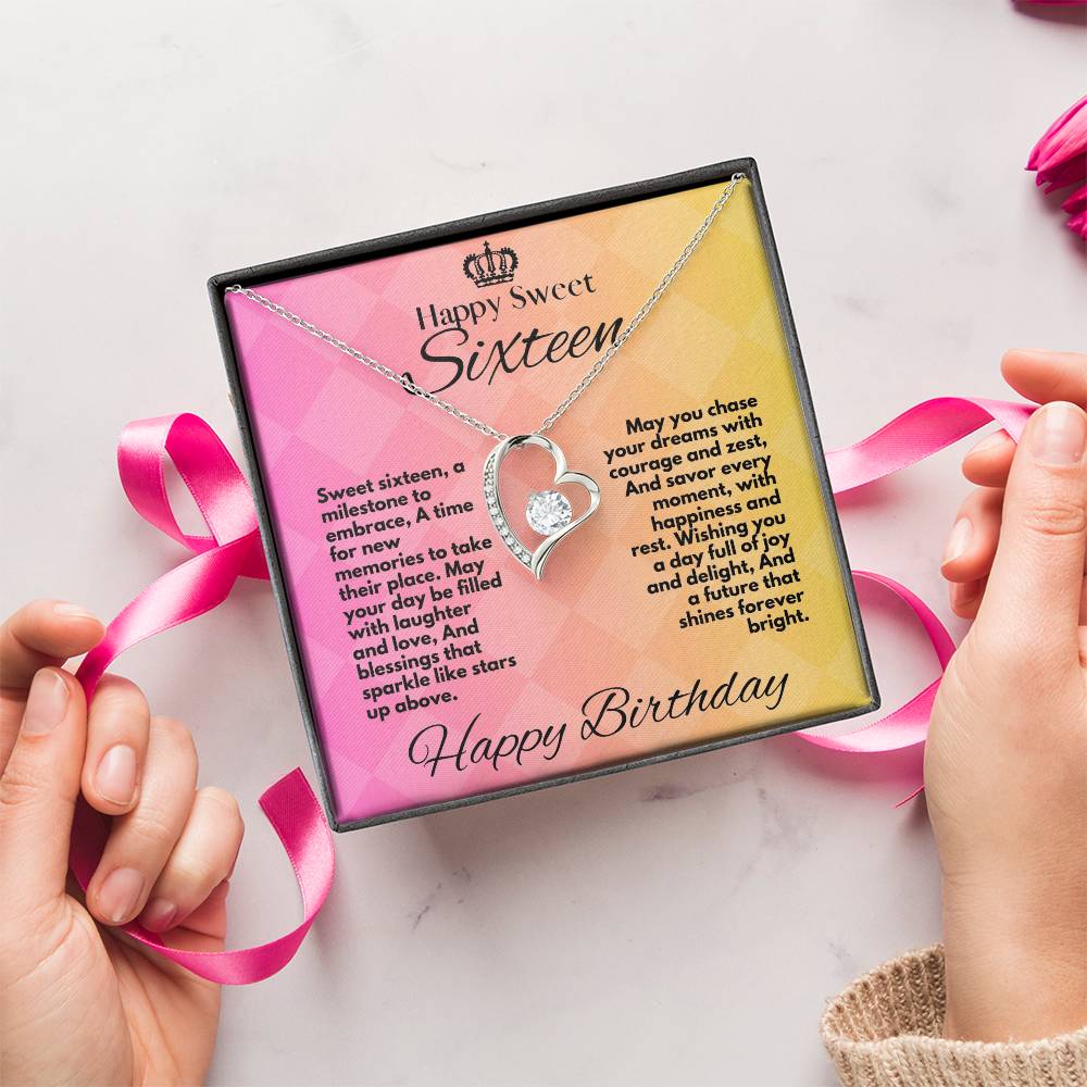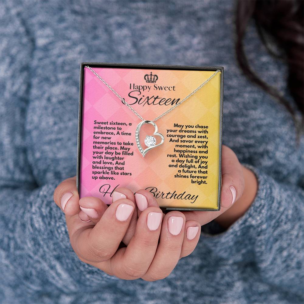 This Sweet 16 Birthday Gift For Daughter is the perfect present to commemorate a special 16th milestone. It features a heart-shaped jewelry necklace and an inspirational Sweet Sixteen message card tucked in a box with a wish for courage and zest, joy, and everlasting brightness. Give her the right start with this meaningful gift.
