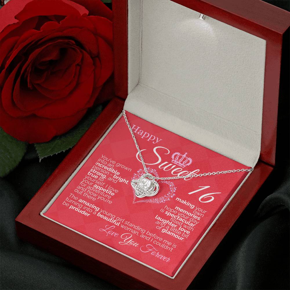 This thoughtful gift for your Sweet 16 daughter features a sparkling heart pendant necklace and a special message card in a box. Each is inscribed with meaningful words to celebrate her big day. The beautiful necklace and touching words will make for an unforgettable Sweet 16th Birthday.