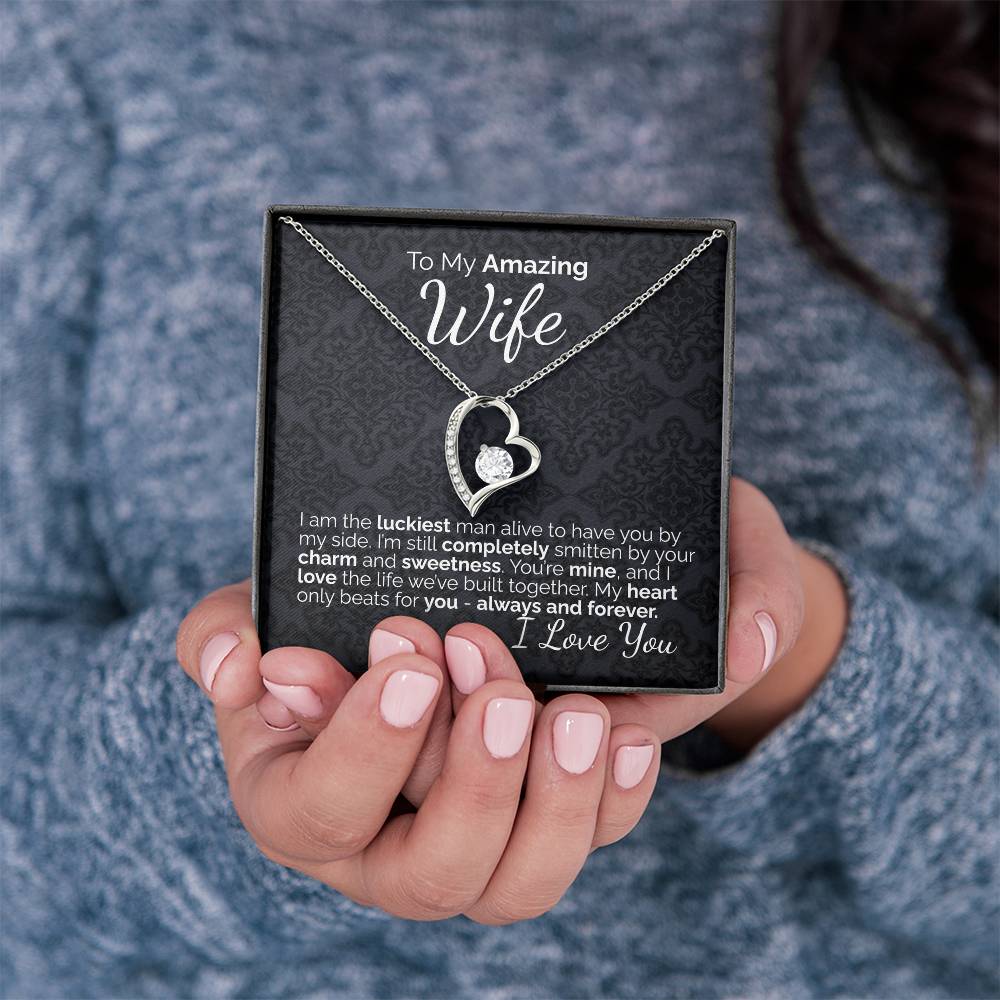 Surprise your special someone with this heartfelt gift box. The personal message card features beautiful and meaningful words, perfect for expressing your love for your wife on any special occasion. The unique jewelry piece also serves as a meaningful gesture, showing your appreciation for your partner's unwavering love and care. An elegant and thoughtful present that is sure to be cherished.