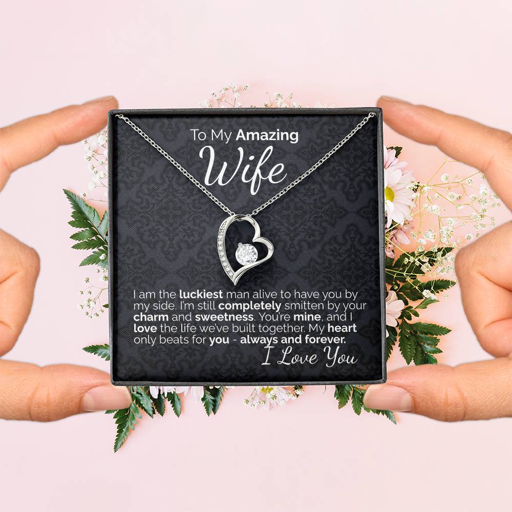 I am honestly theluckiest man alive to have you by my side. I’m stillcompletely smitten by yourcharm andsweetness. You’remine, and Ilove the life we’ve built together. Myheart only beats foryou -always and forever.