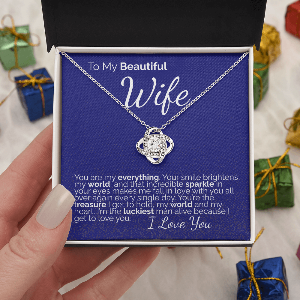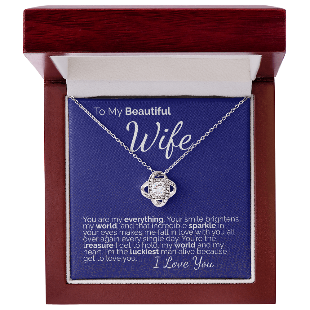 To My Beautiful Wife. You are myeverything. Your smile brightens myworld, and that incrediblesparkle in your eyes makes me fall in love with you all over again every single day. You’re the treasureI get to hold, myworld and my heart. I’m theluckiest man alive because I get to love you. I Love You.