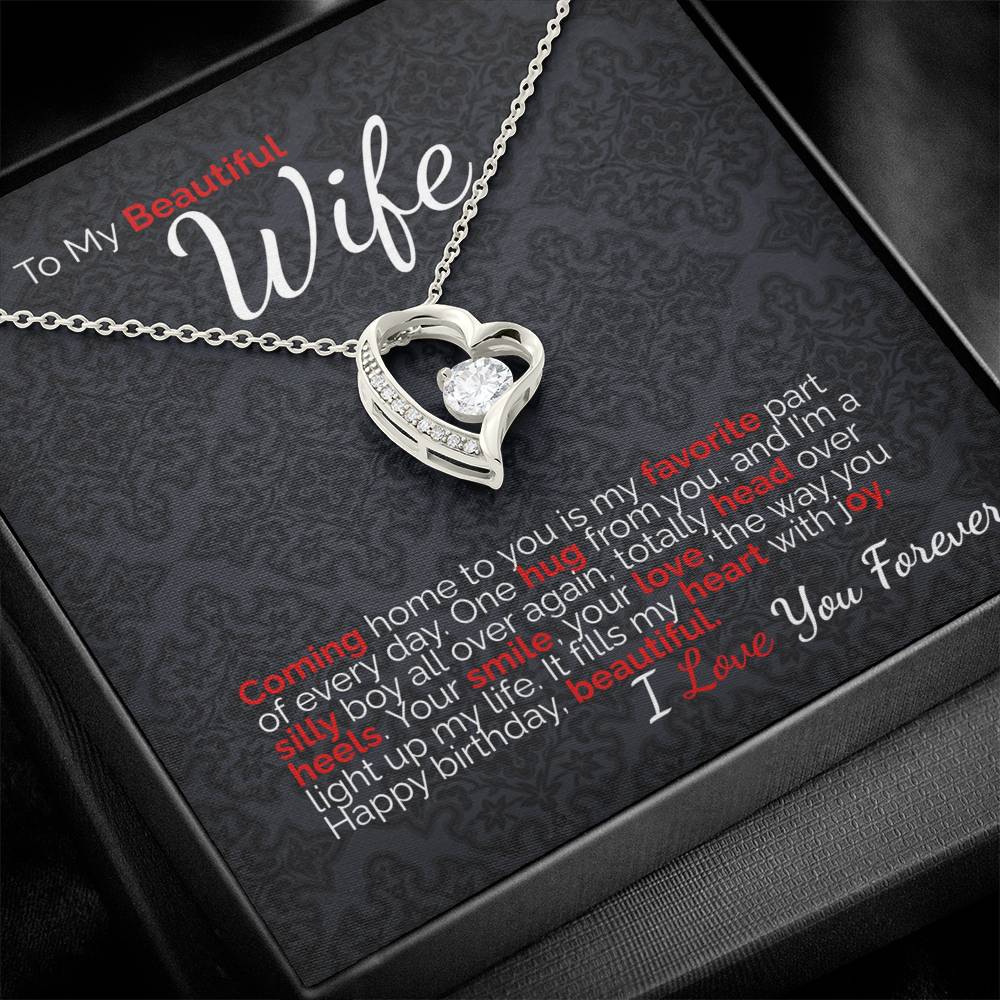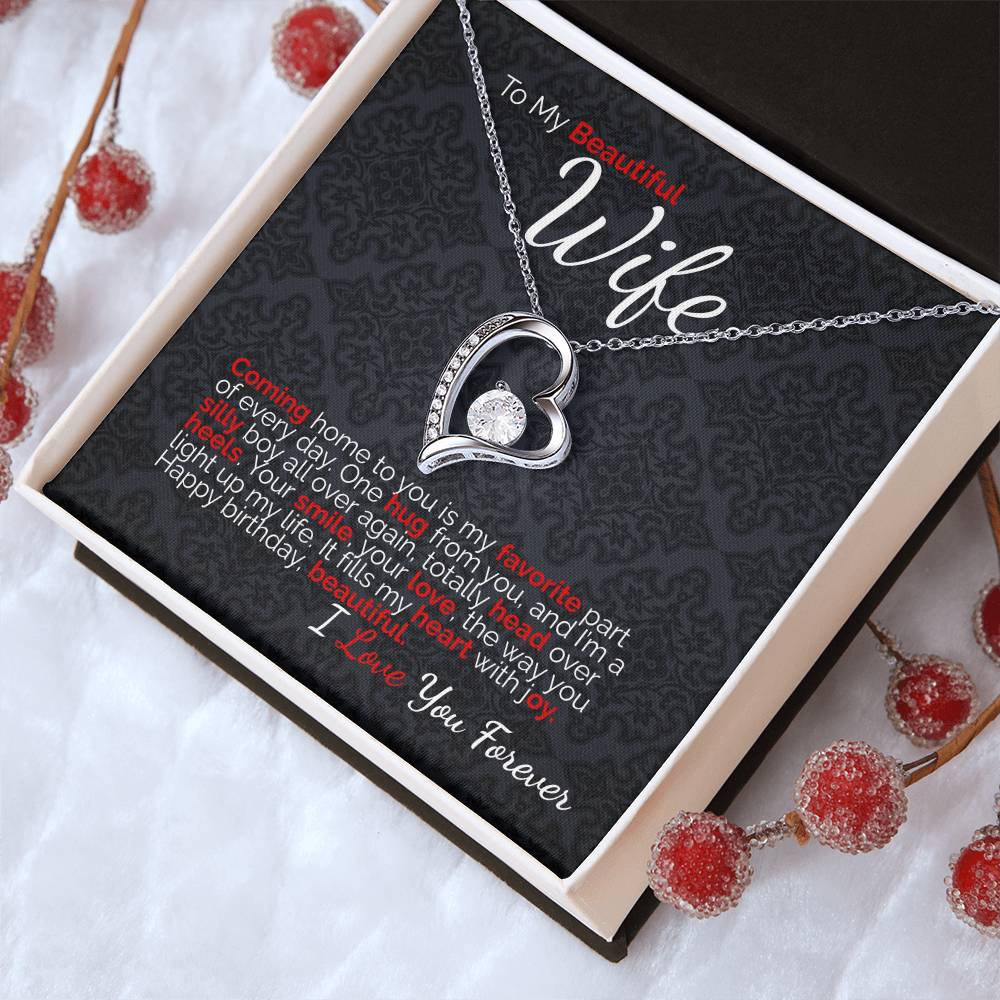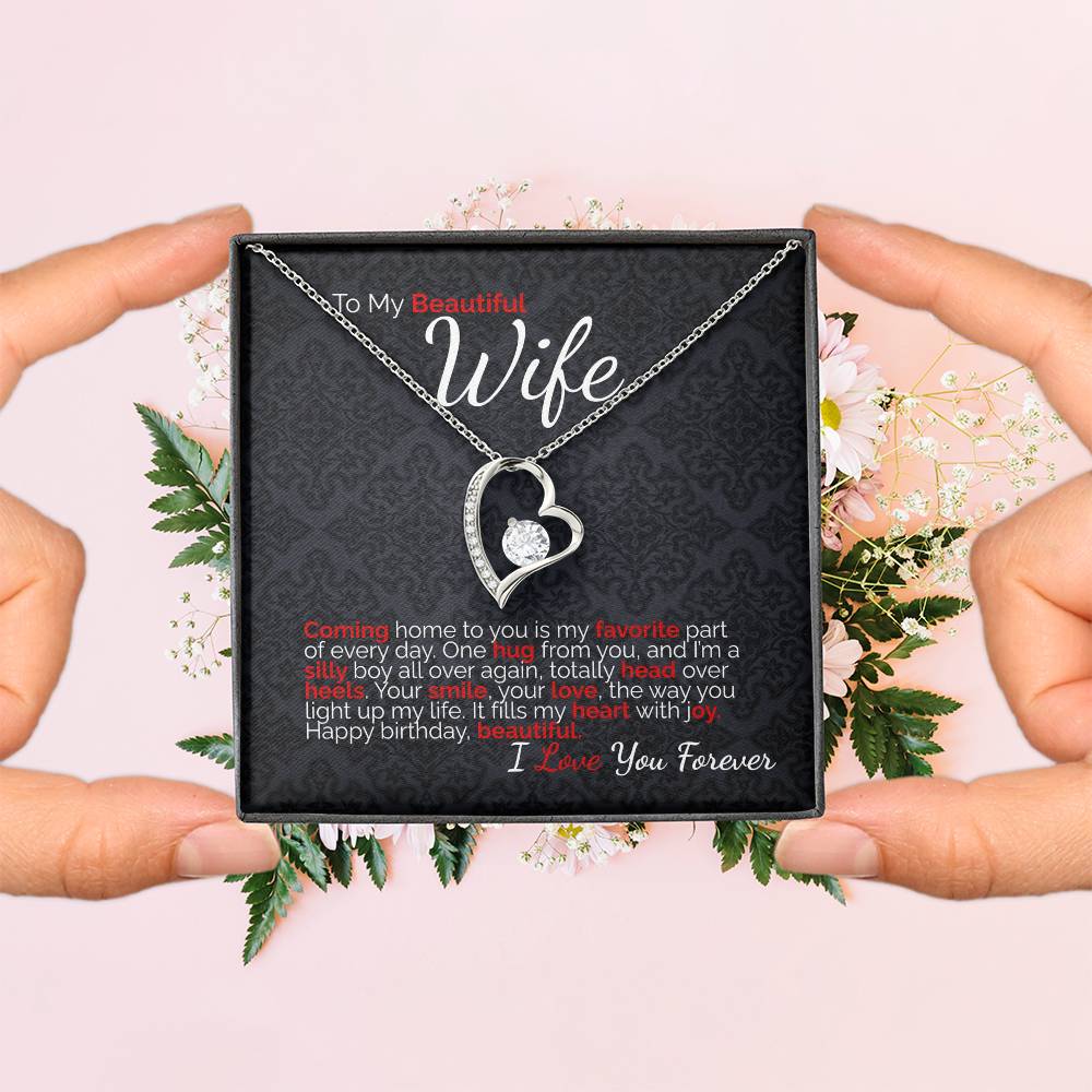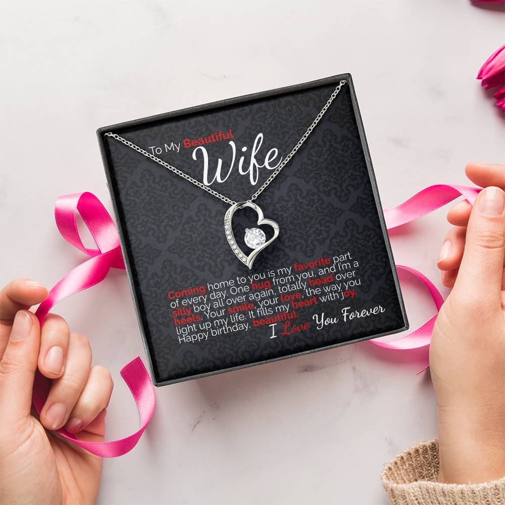 Surprise your special someone with this heartfelt gift box. The personal message card features beautiful and meaningful words, perfect for expressing your love for your wife on any special occasion. The unique jewelry piece also serves as a meaningful gesture, showing your appreciation for your partner's unwavering love and care. An elegant and thoughtful present that is sure to be cherished.