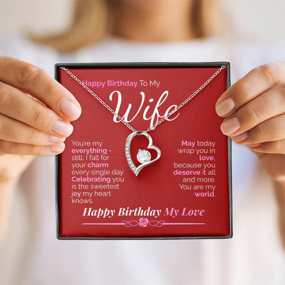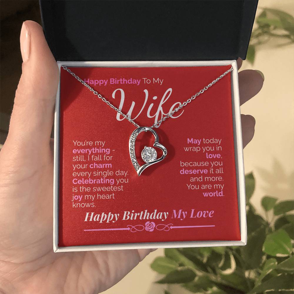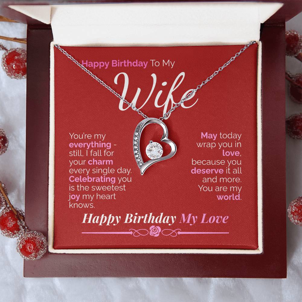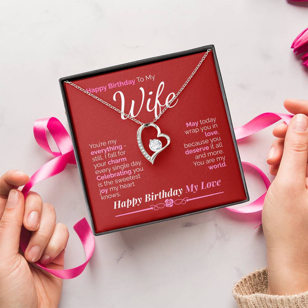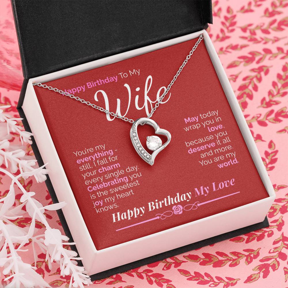 Happy Birthday To My Wife.  You’re myeverything - still, I fall for yourcharm every single day.Celebrating you is the sweetest joy my heart knows. May today wrap you in love, because you deserve it all and more. You are my world. Happy Birthday My Love