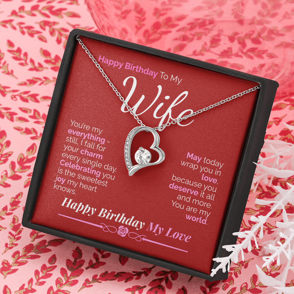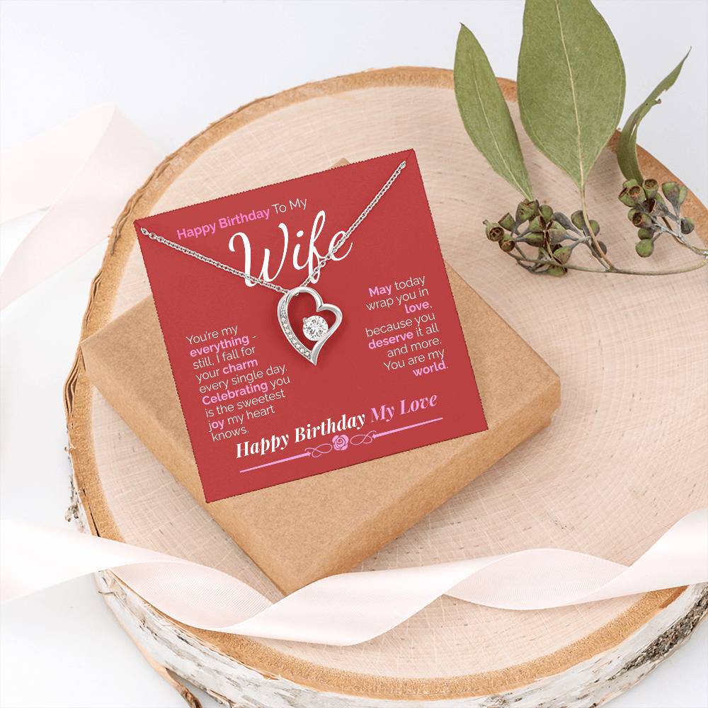 Surprise your special someone with this heartfelt gift box. The personal message card features beautiful and meaningful words, perfect for expressing your love for your wife on any special occasion. The unique jewelry piece also serves as a meaningful gesture, showing your appreciation for your partner's unwavering love and care. An elegant and thoughtful present that is sure to be cherished.
